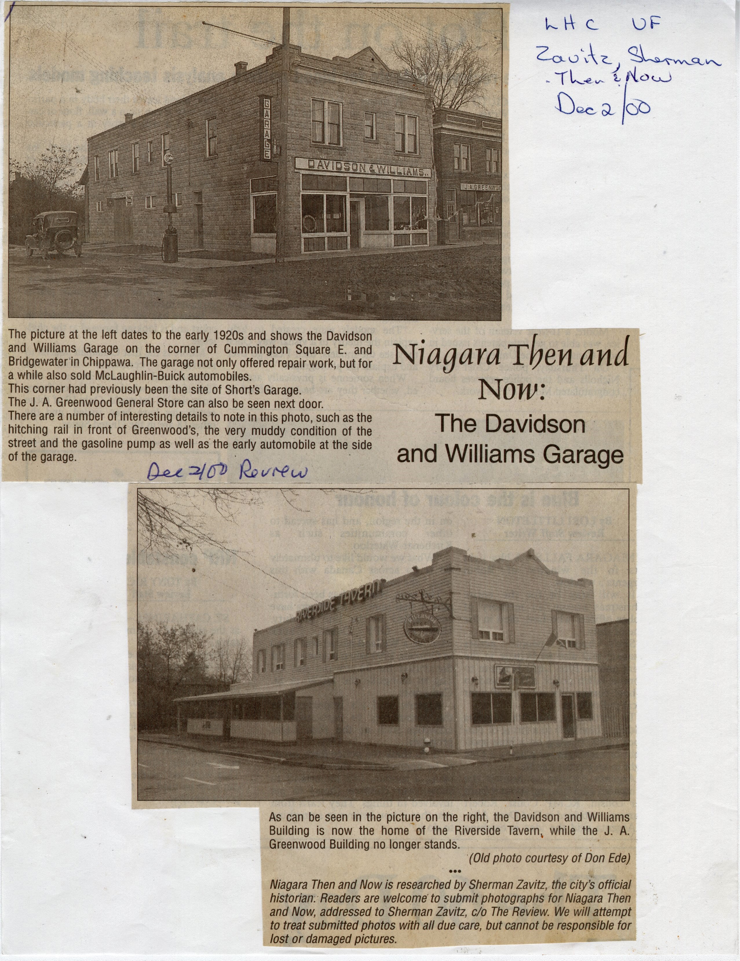 - Niagara Then and Now : The Davidson and Williams Garage