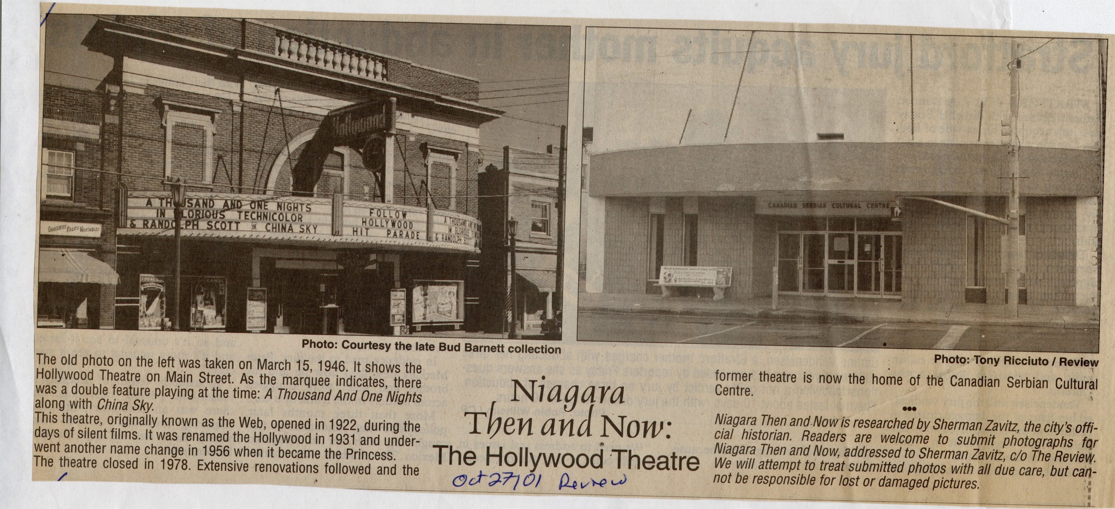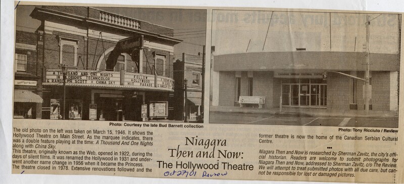 - Hollywood Theatre / 1946 / Main Street / The Web / 1922 / Princess Theatre / 1956 / Canadian Serbian Cultural Centre