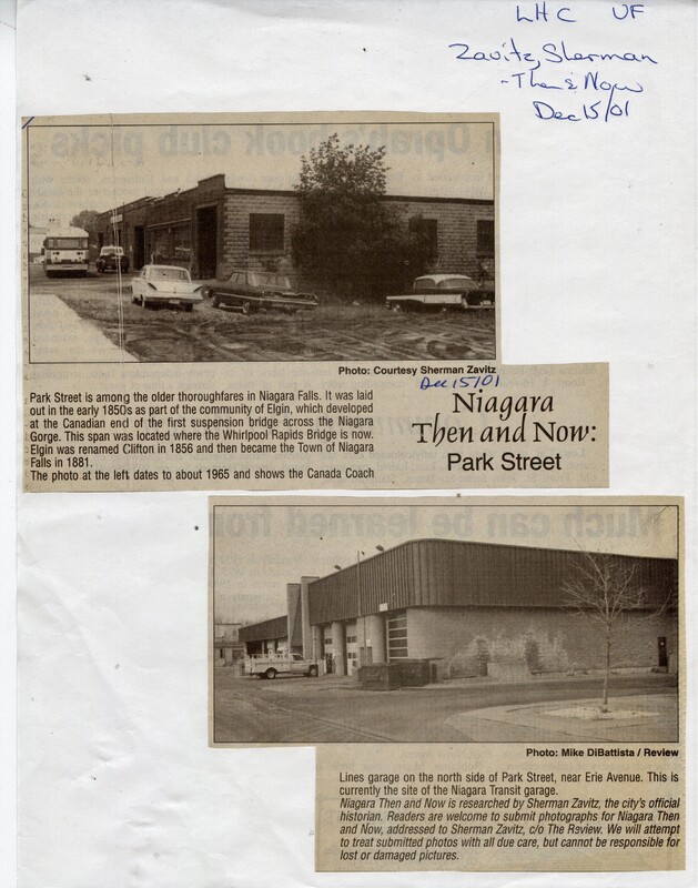 - Park Street / 1850's / community of Elgin / Whirlpool Rapids Bridge / Canada Coach Lines / Niagara Transit garage