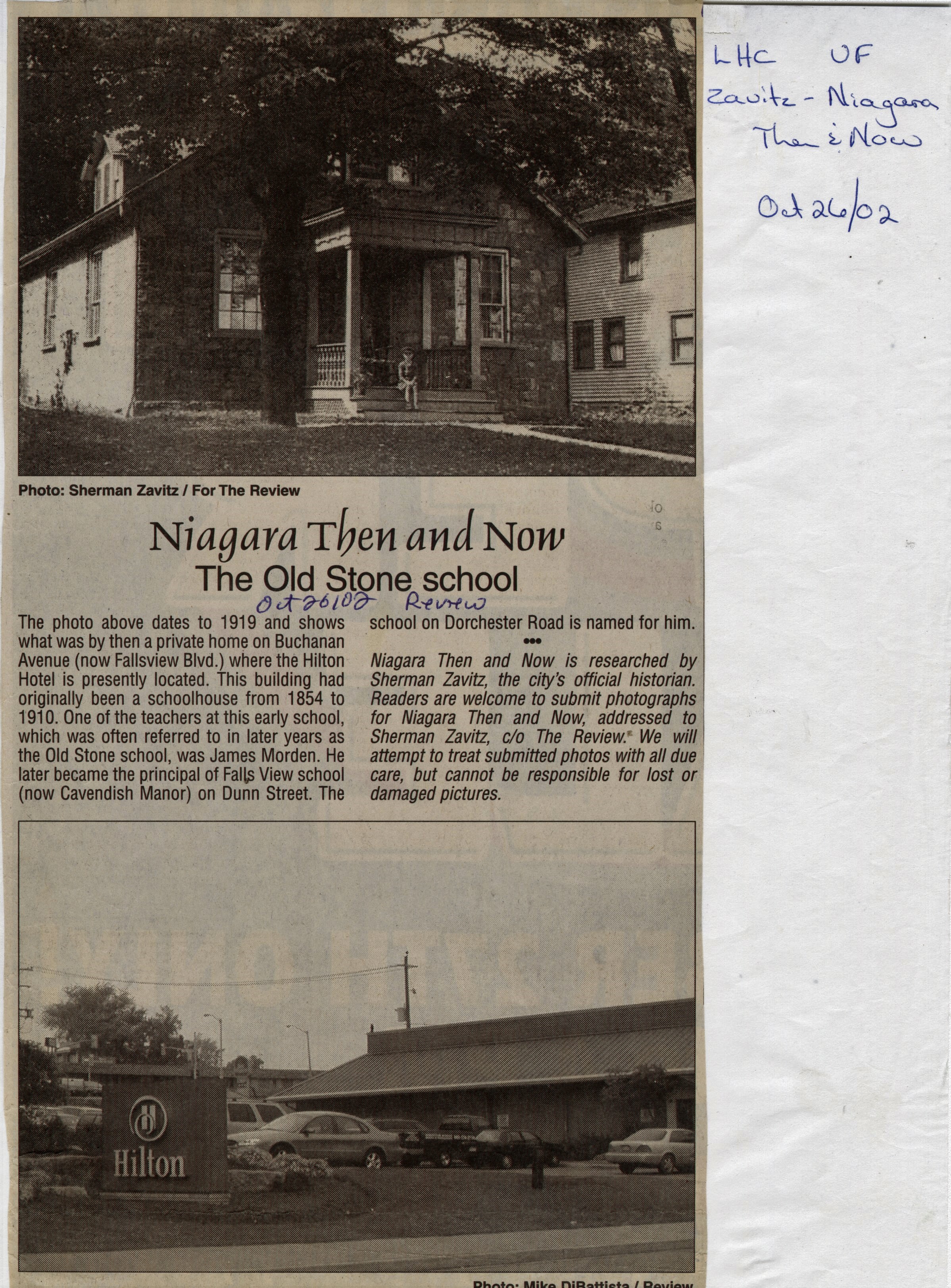 - Old Stone School / school house 1854-1910 / Buchanan Avenue / Morden, James / Falls View School / principal