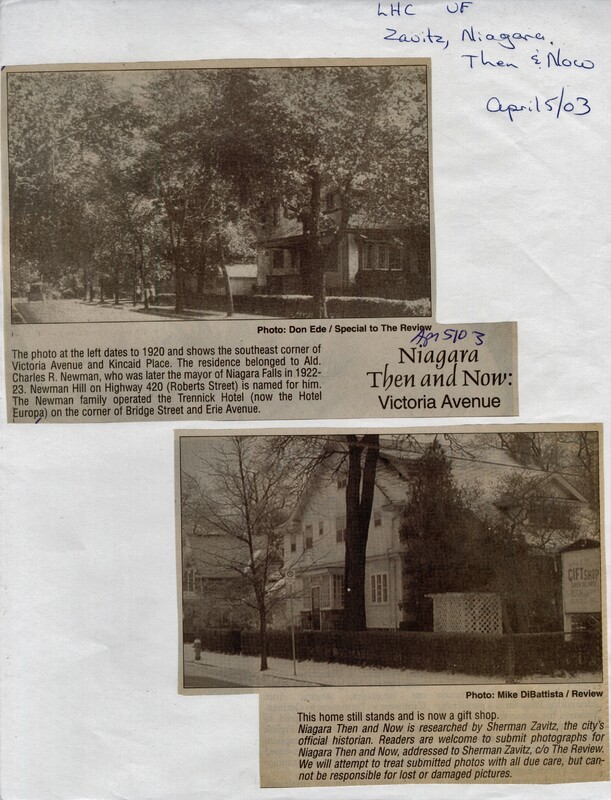 - Sherman Zavitz Niagara Then and Now Newspaper Column Collection