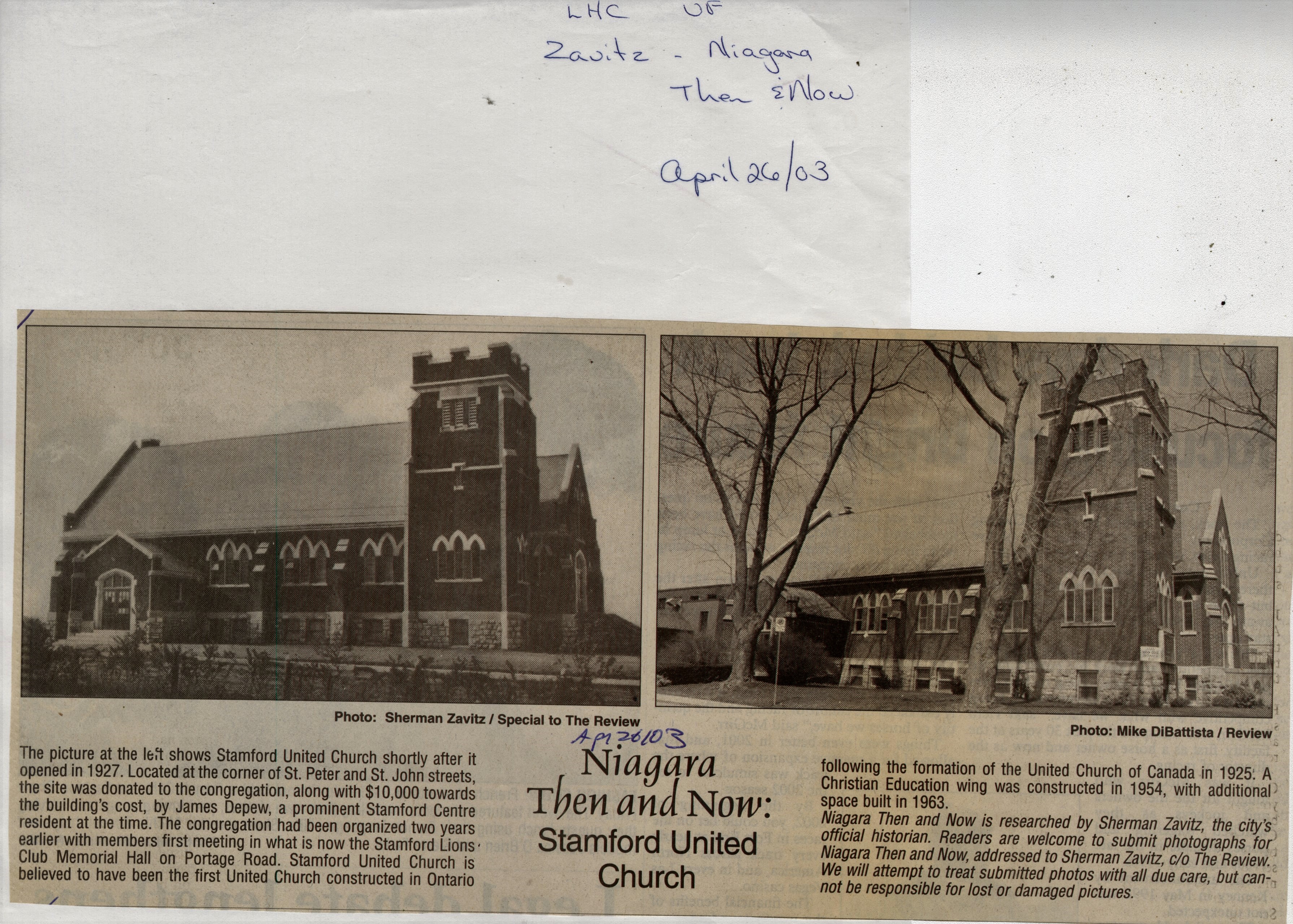 - Niagara Then and Now : Stamford United Church