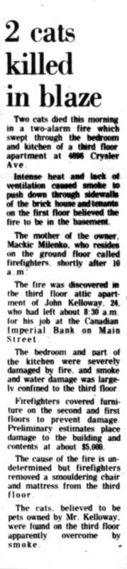 - two-alarm fire / 4896 Crysler Ave / Milenko, Mackie / Kelloway, John