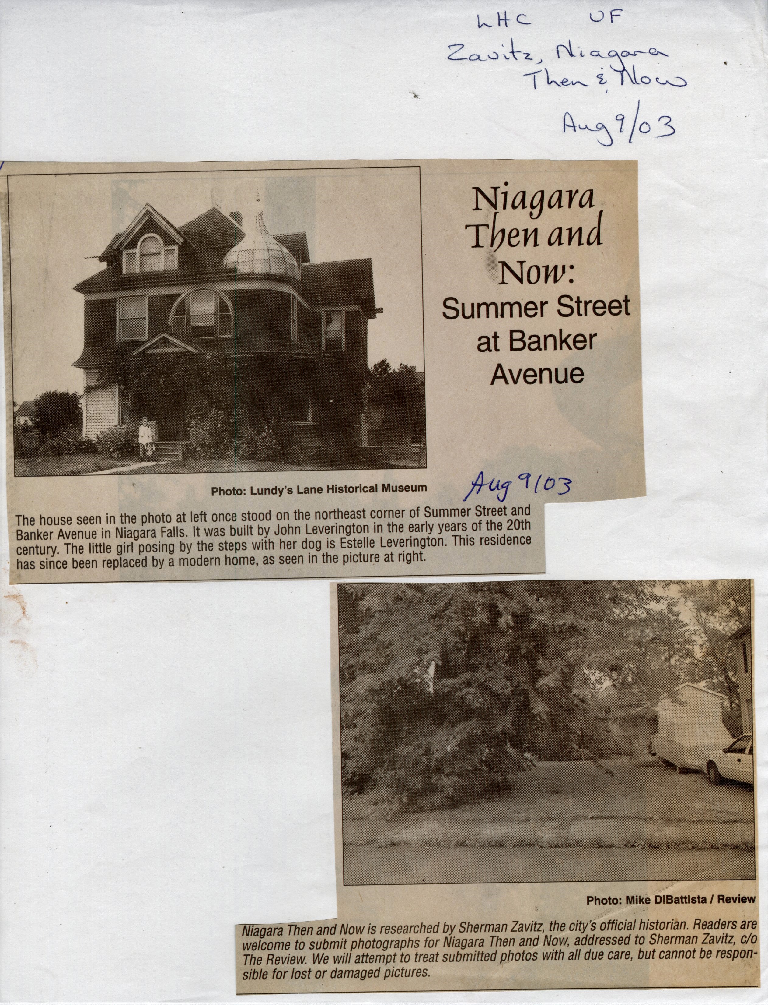 - Sherman Zavitz Niagara Then and Now Newspaper Colum Collection
