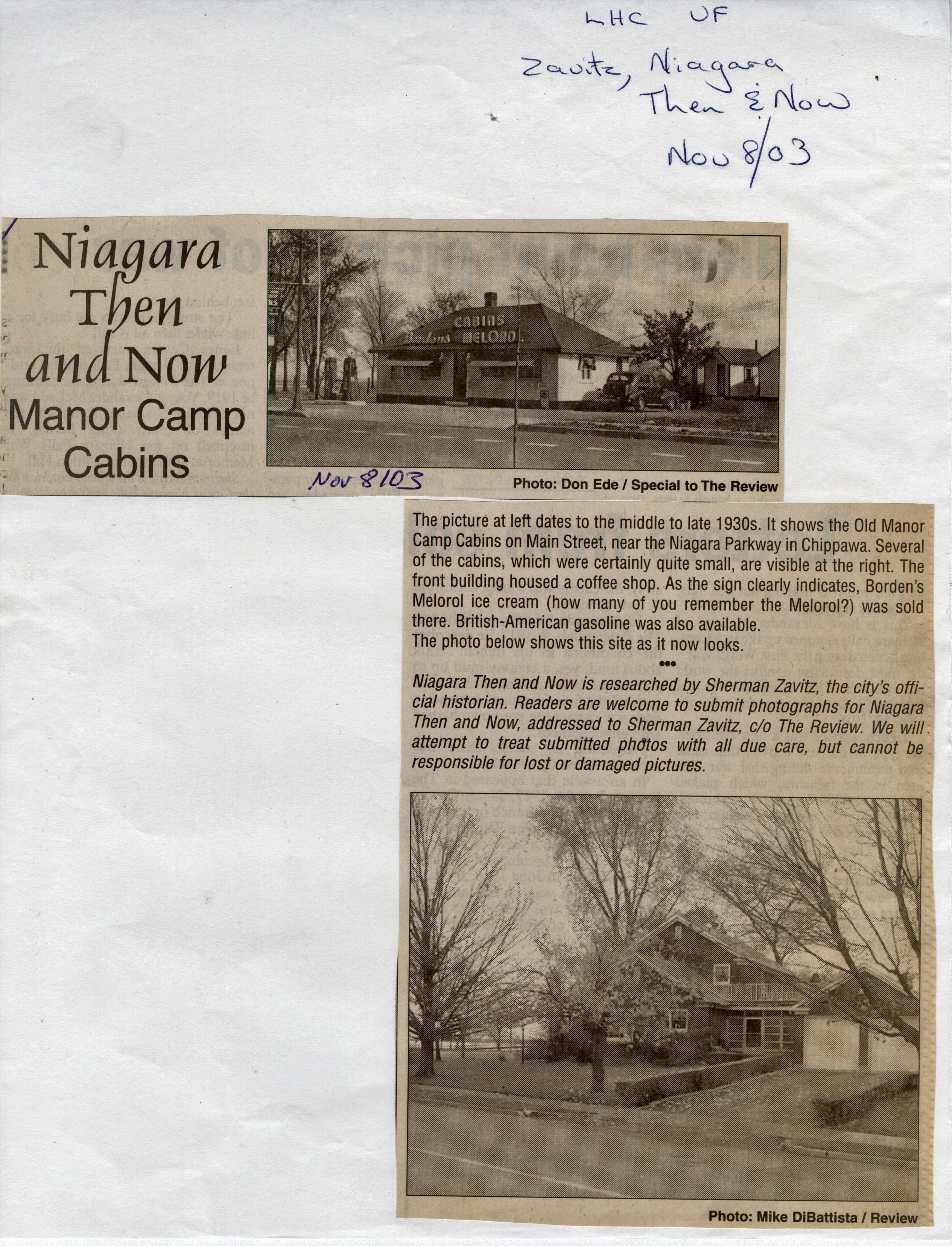 - Old Manor Camp Cabins / Main Street / 1930's / Niagara Parkway / Chippawa / Borden's Melorol Ice Cream /