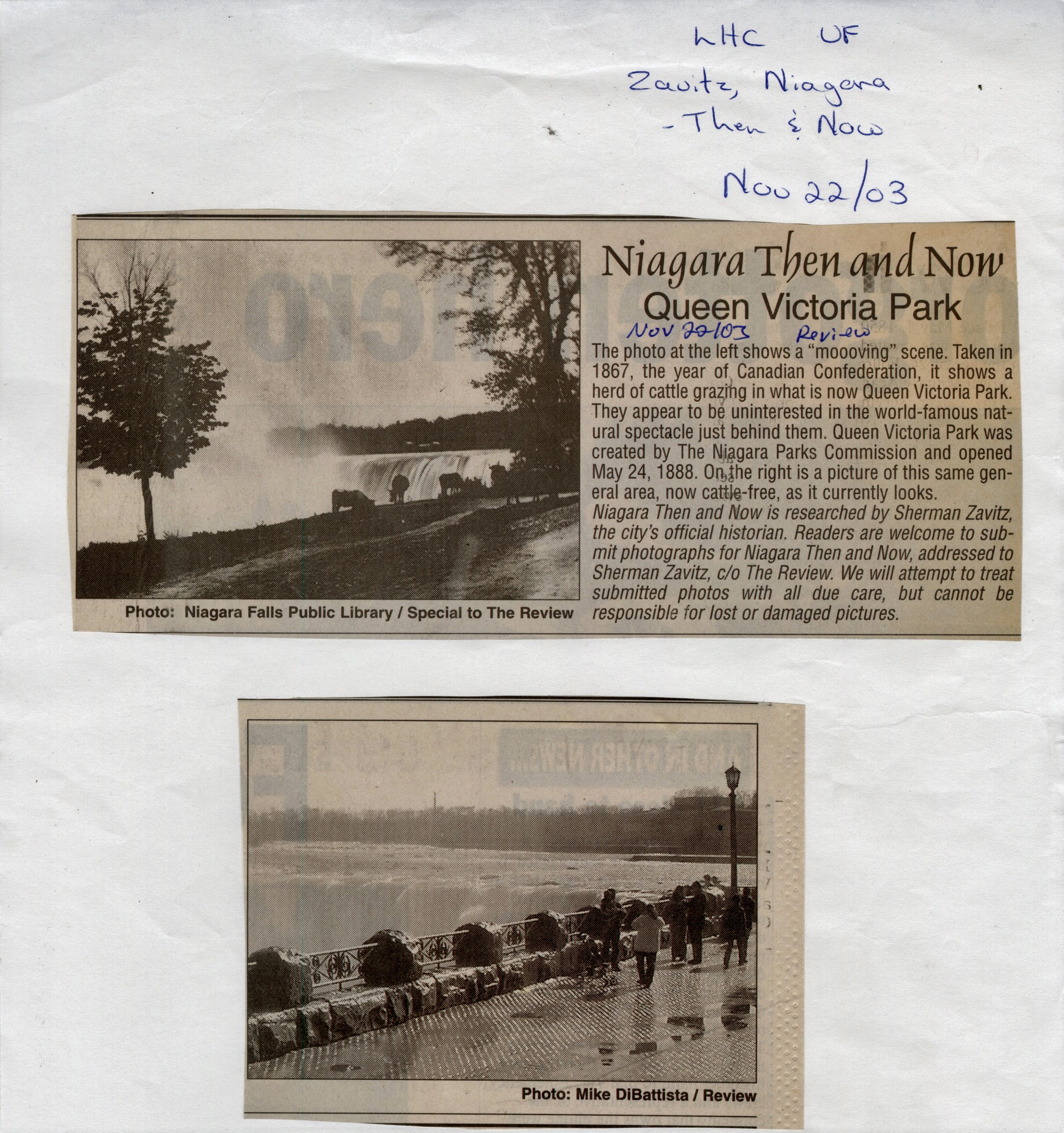 - Sherman Zavitz Niagara Then and Now Newspaper Column Collection