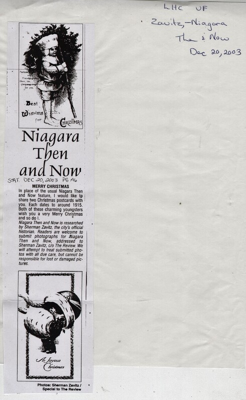 - Sherman Zavitz Niagara Then and Now Newspaper Column Collection