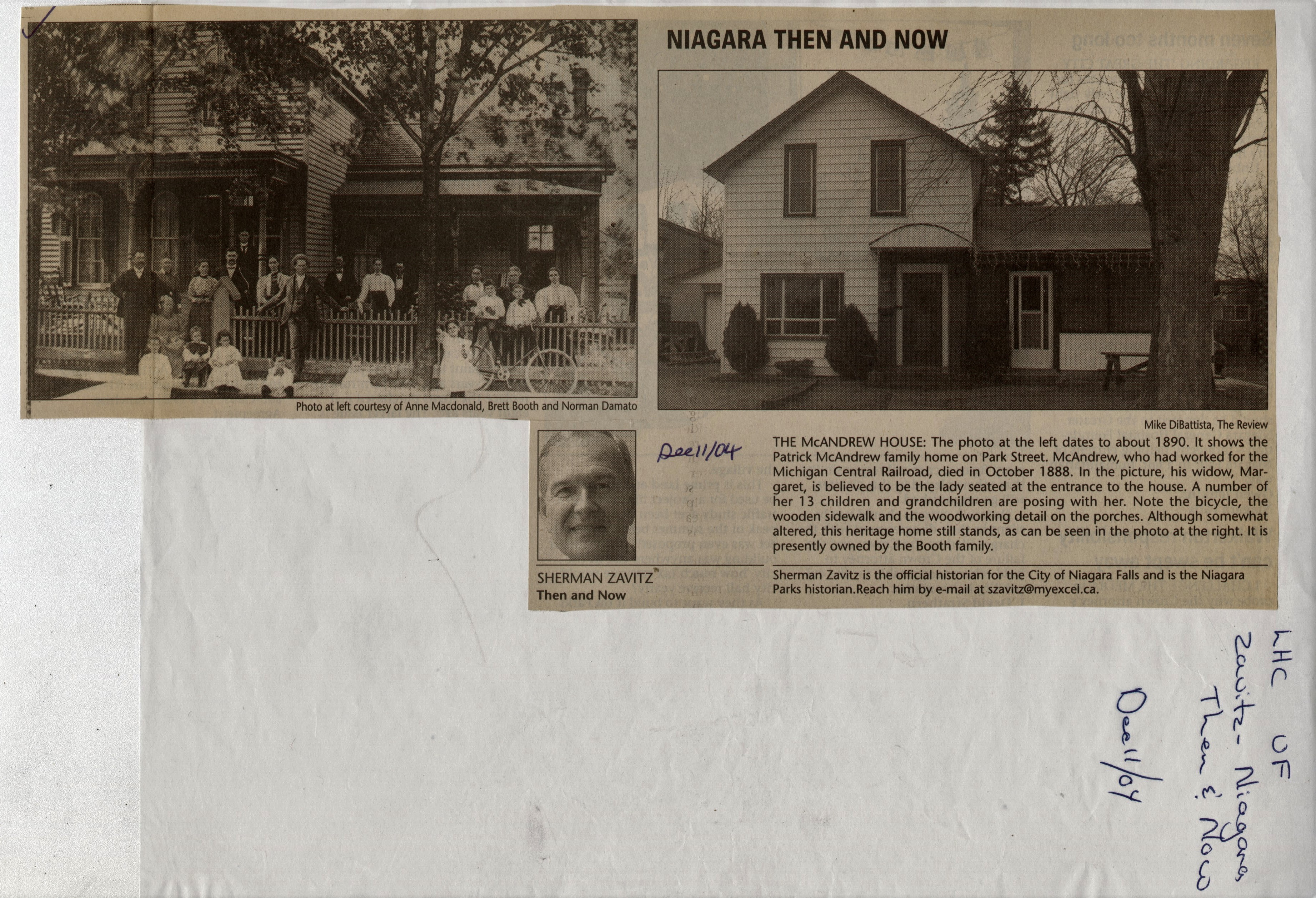 - Sherman Zavitz Niagara Then and Now Newspaper Column Collection