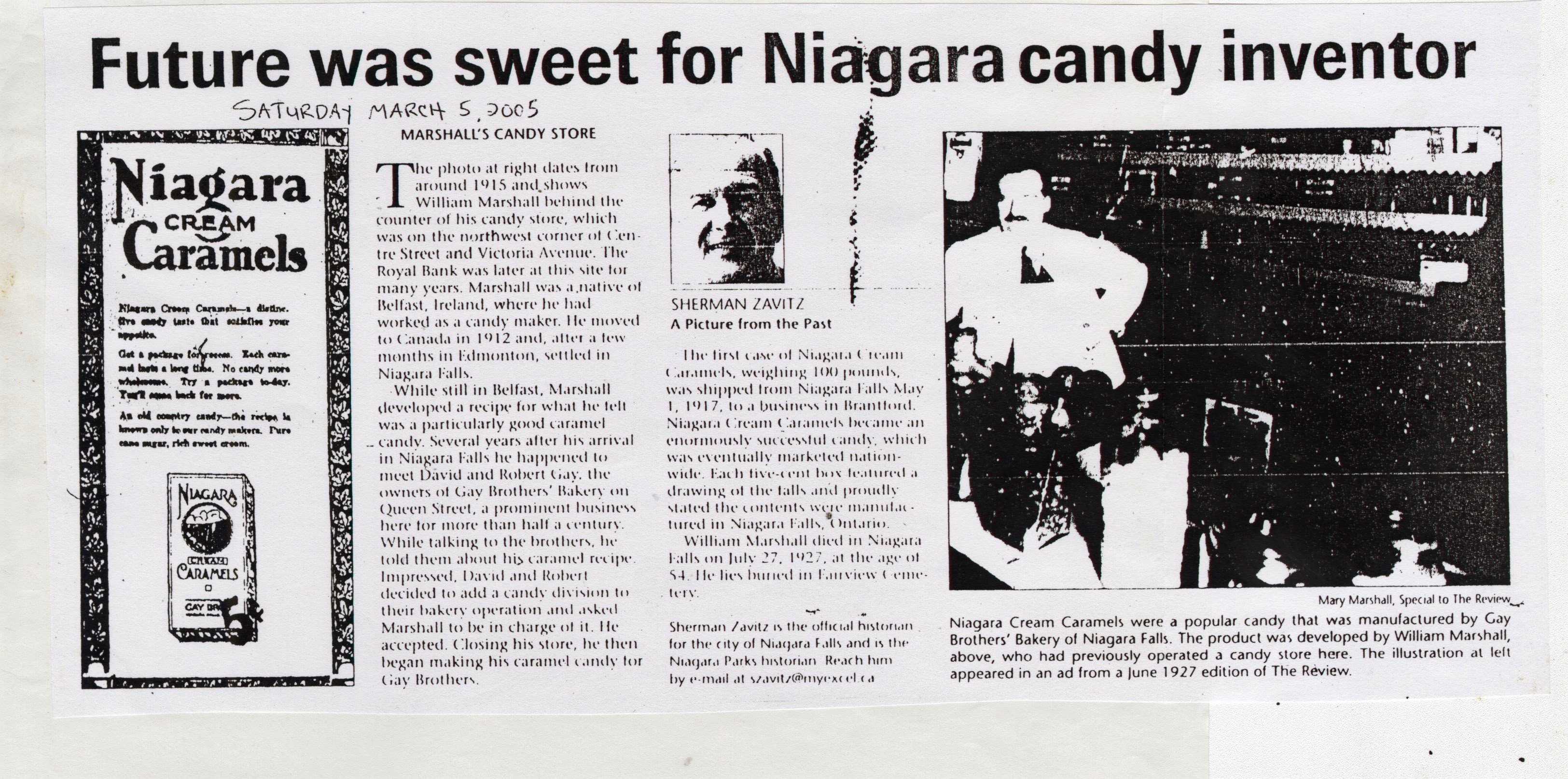 - Future was sweet for Niagara candy inventor : Marshall's Candy Store