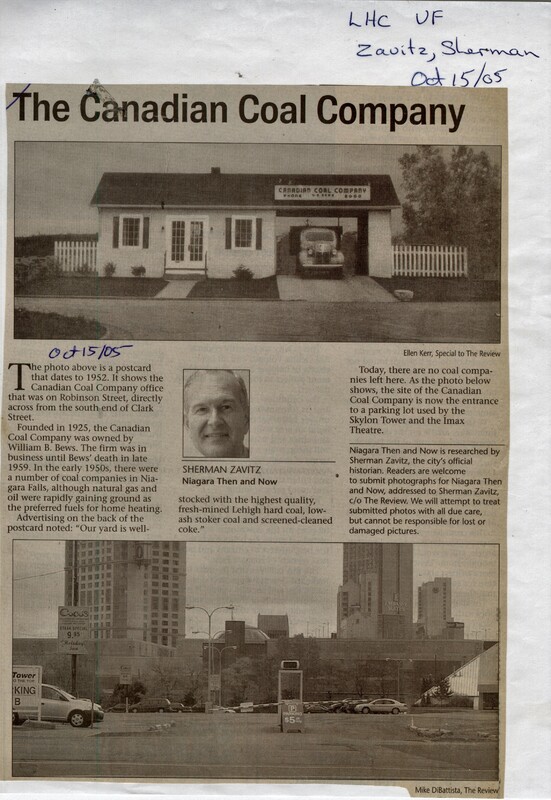 - Sherman Zavitz Niagara Then and Now Newspaper Column Collection