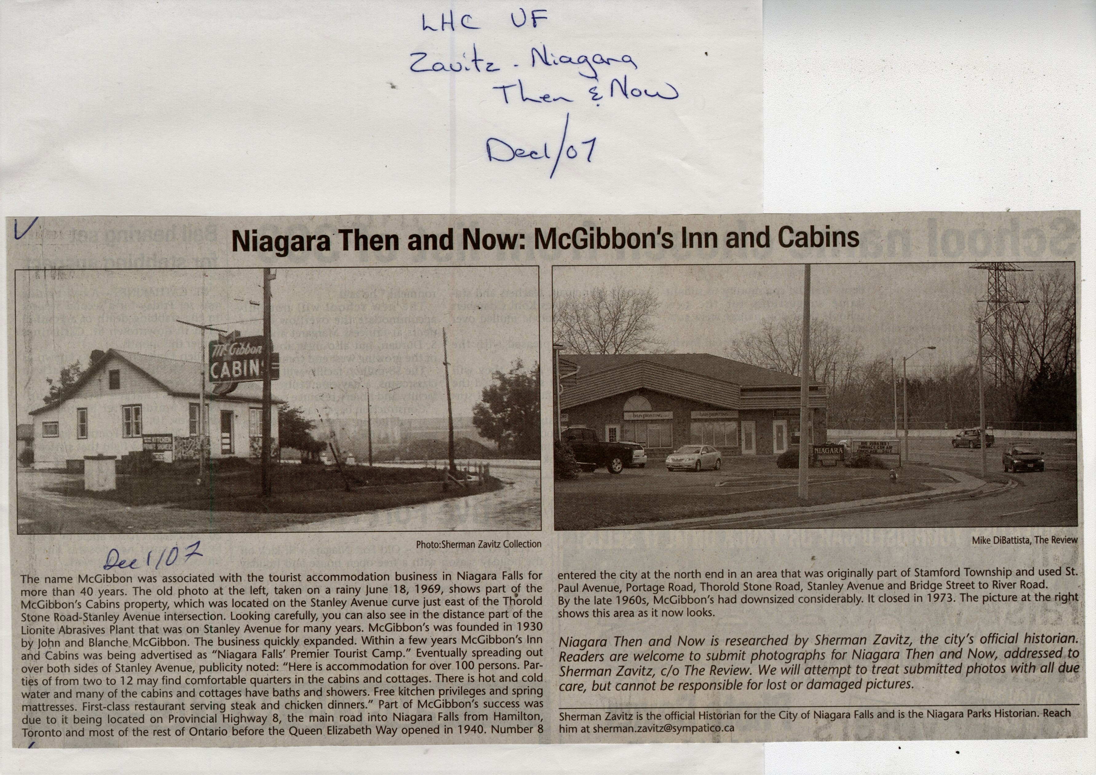 - McGibbon, John & Blanche / McGibbon's Cabins / Stanley Ave / Thorold Stone Road / Niagara Falls Premier Tourist Camp