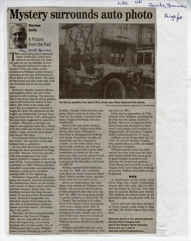 - Doran, William Lowry / 1910 / River Road / Ellis Street / Oldsmobile Limited Touring Car 1910 / Dominion Suspender Company