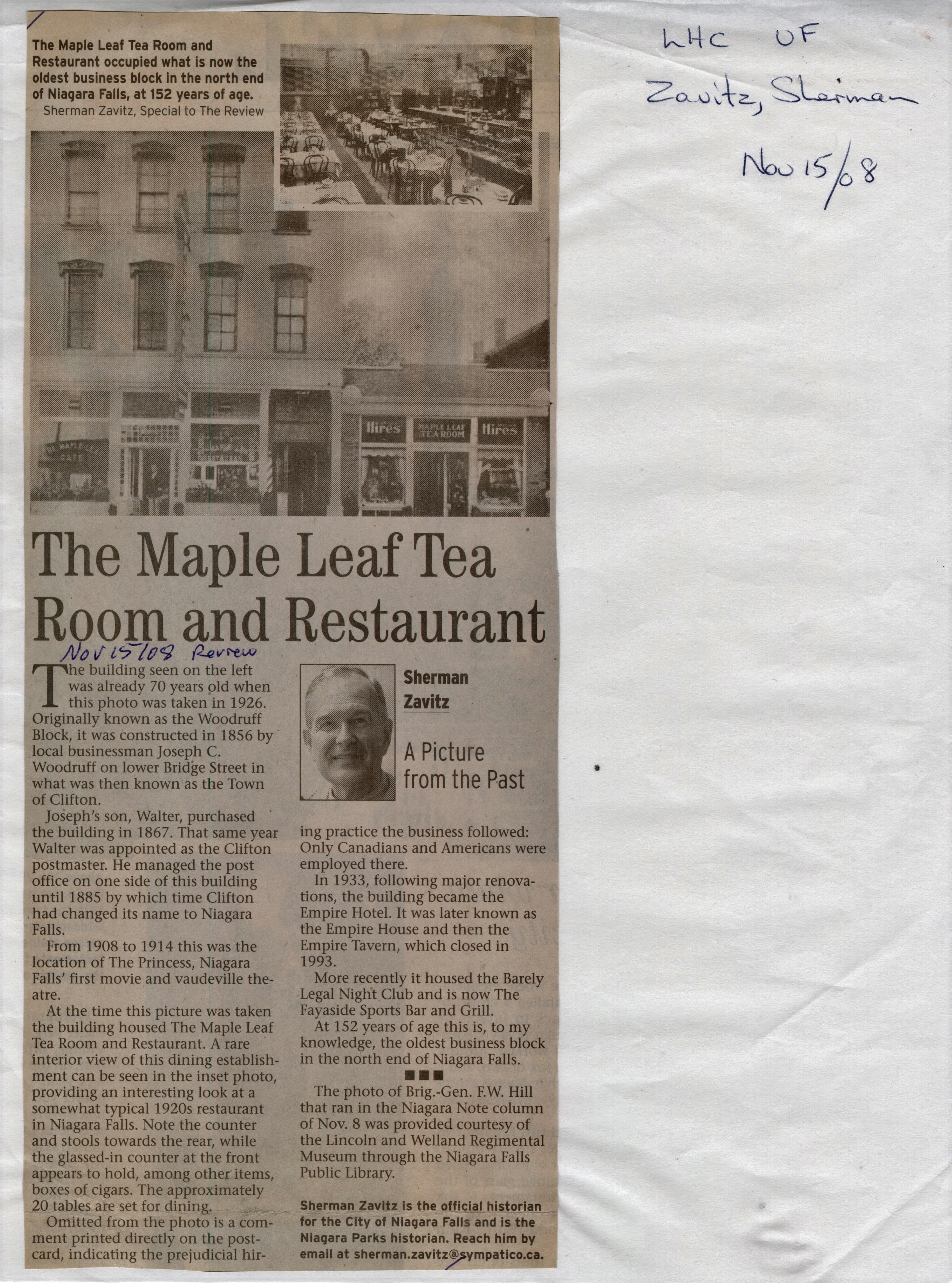 - Niagara Then and Now Newspaper Column Collection : The Maple Leaf Tea Room
