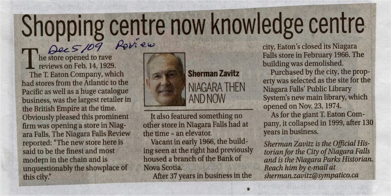 - The T. Eaton Company / 1929 / Bank of Nova Scotia / Niagara Falls Public Library site / Nov. 23 1974