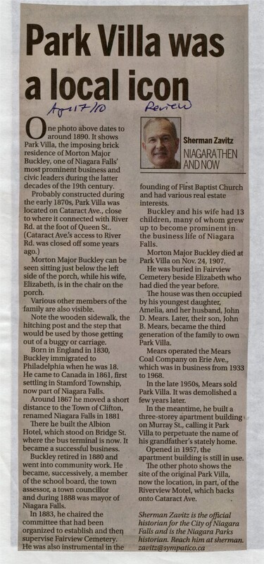 - Buckley, Morton Major / Park Villa / 1890 / Cataract Avenue / River Road / Queen Street