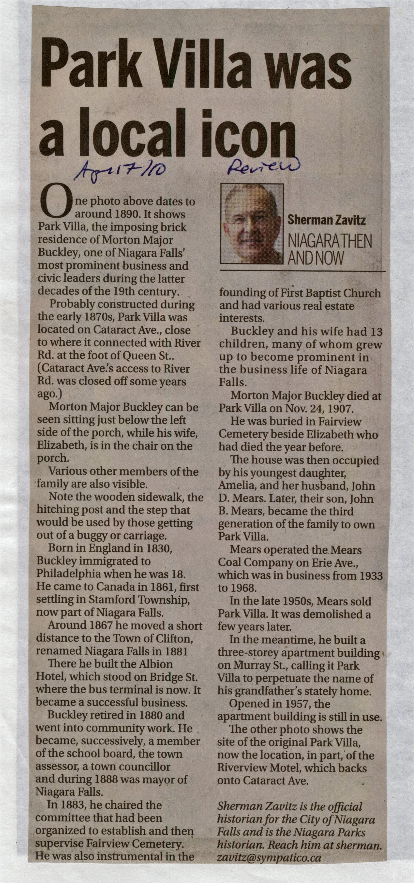 - Sherman Zavitz Niagara Then and Now Newspaper Column Collection