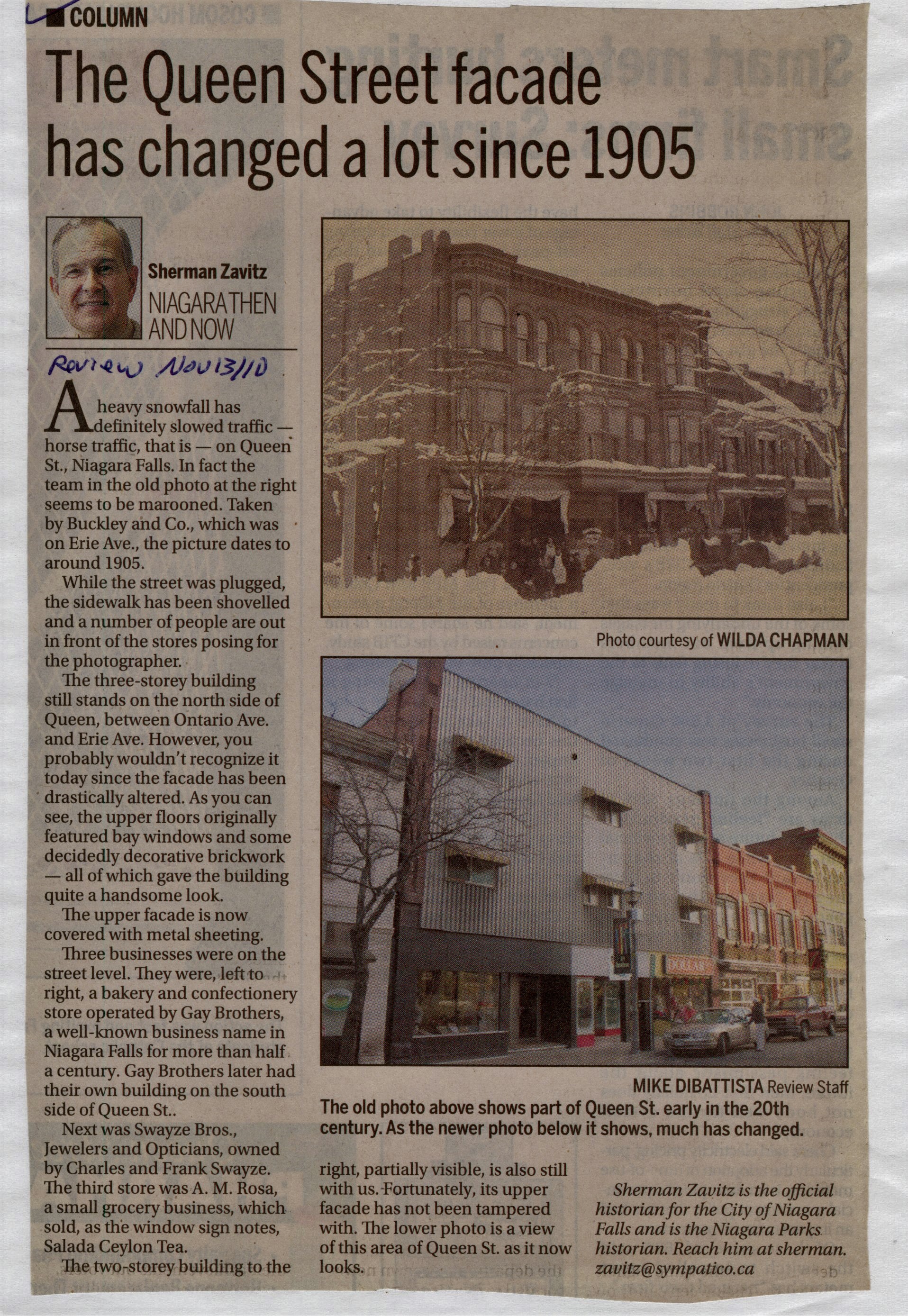 - Sherman Zavitz Niagara Then and Now Newspaper Column Collection