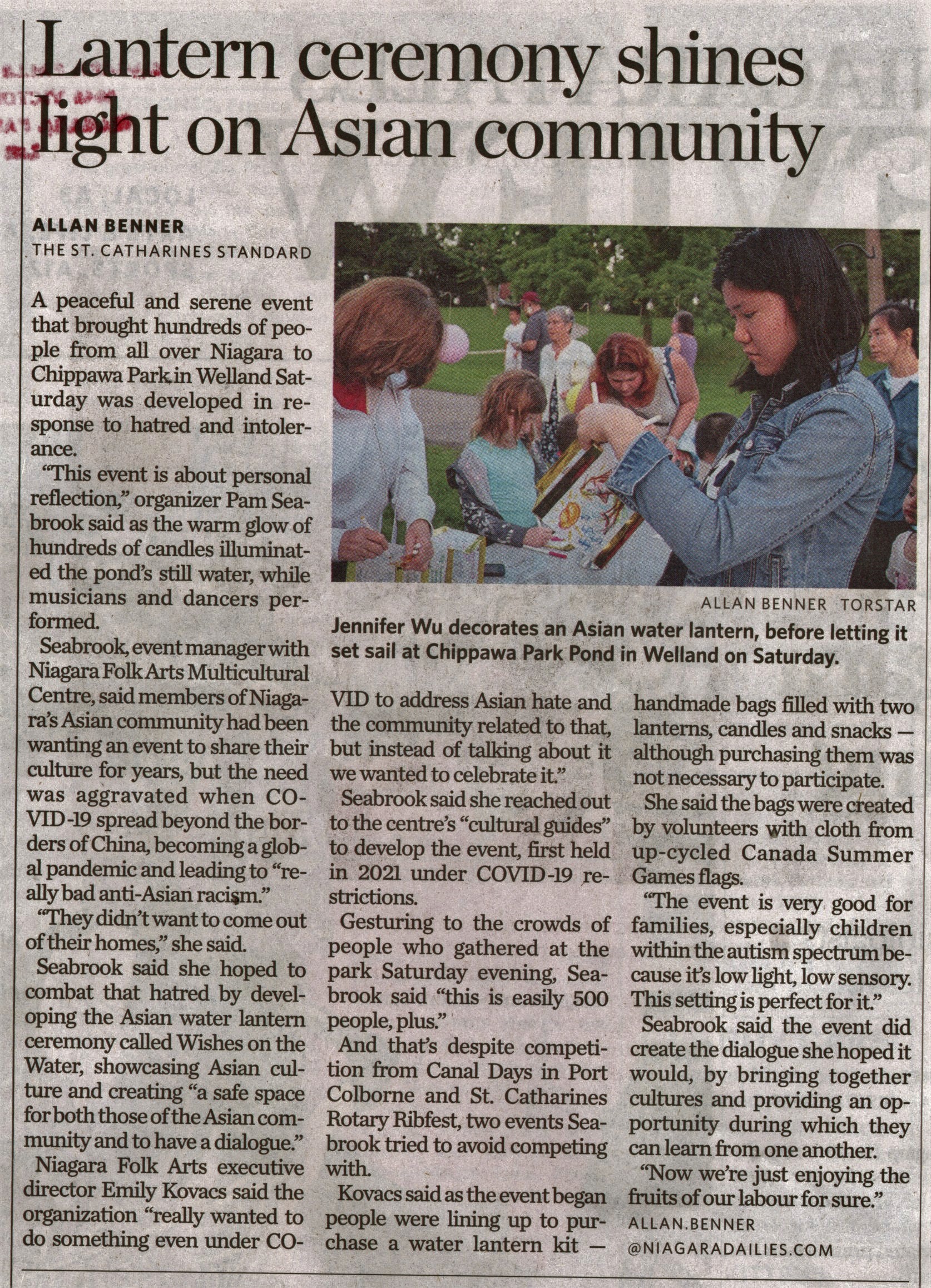 - Wu, Jennifer / Seabrook, Pam / Niagara Folk Arts Multiculteral Centre / Kovacs, Emily / anti-Asian racism / Chippawa Park Pond