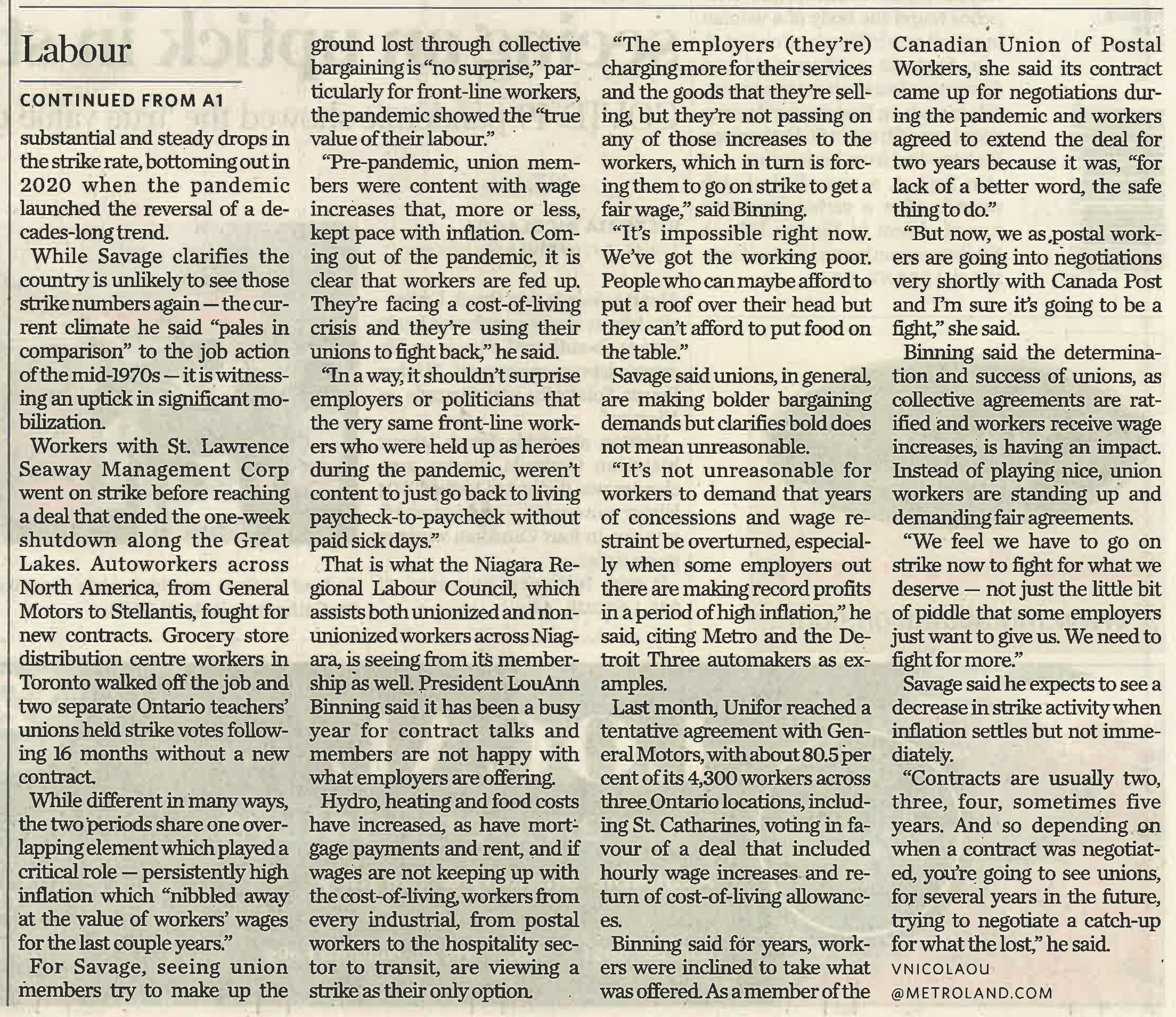 - Savage, Larry / Patrias, Carmela / St. Lawrence Seaway Management Corp. / Labour Council / Binning, LouAnn / Canadian Union of Postal Workers