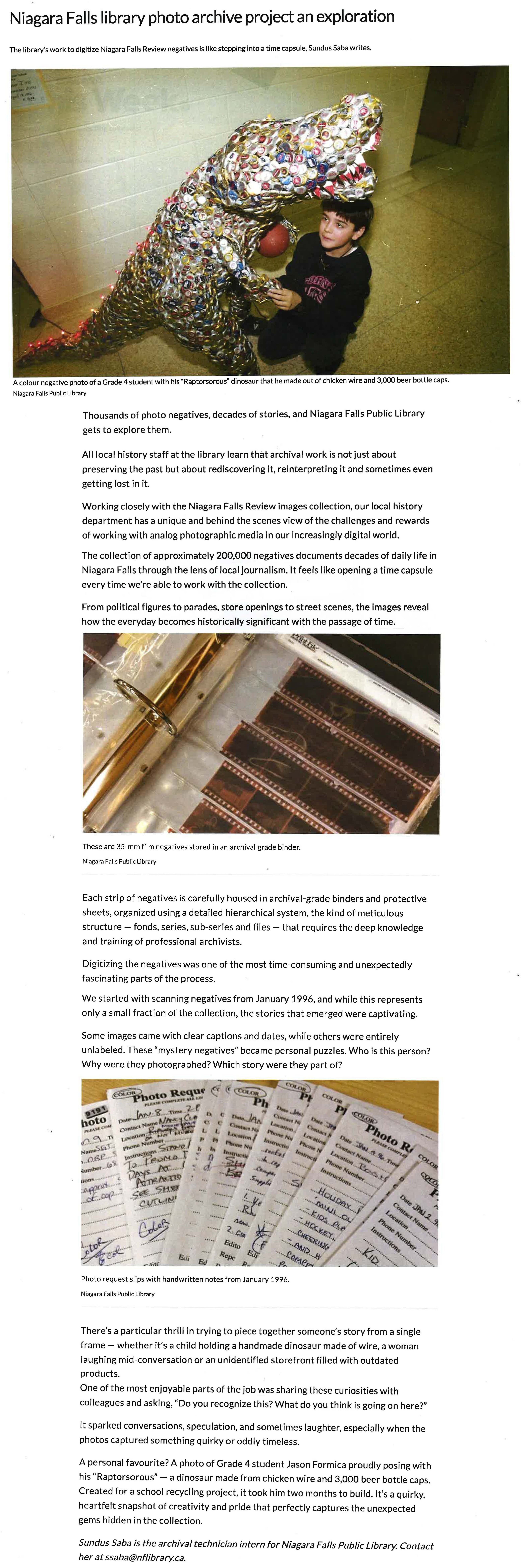- Niagara Falls library photo archive project an exploration : The library's work to digitize Niagara Falls Review negatives is like stepping into a time capsule