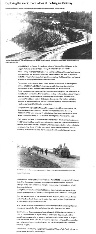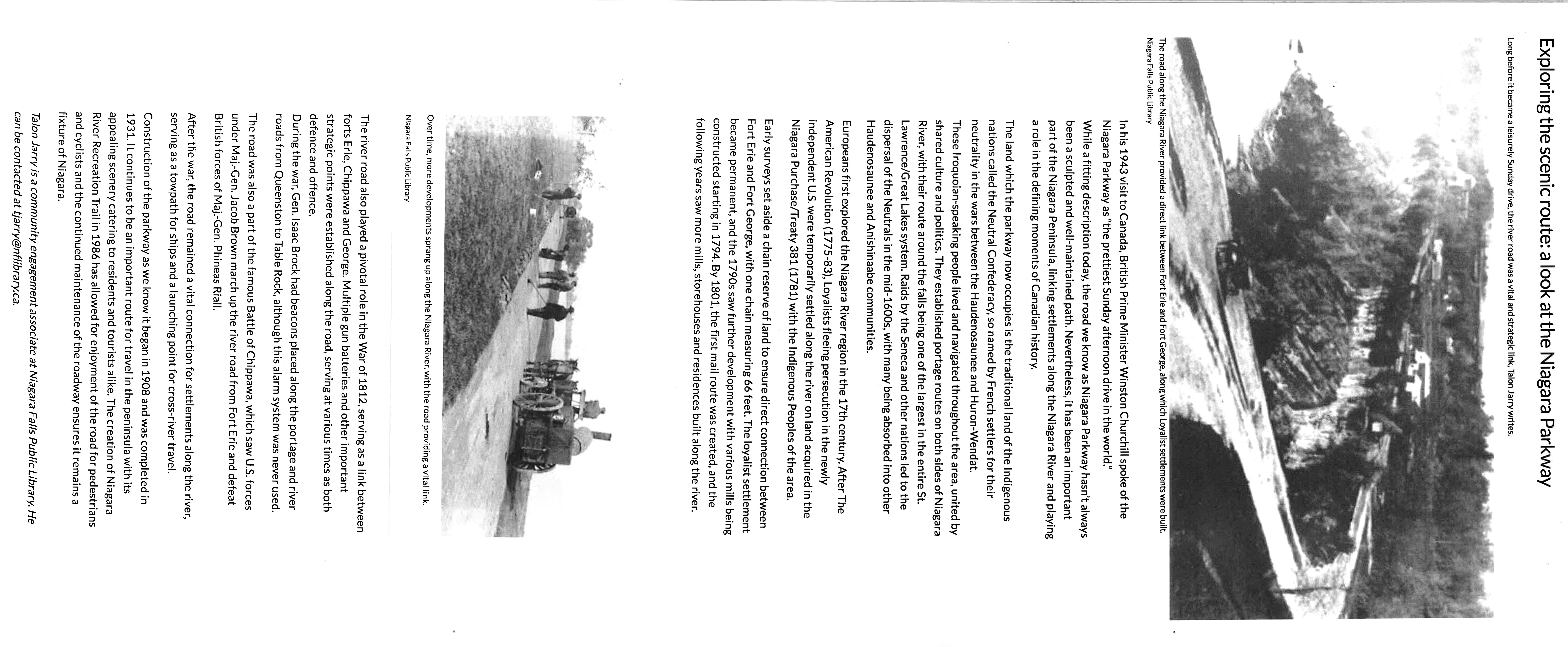 - Exploring the scenic route: a look at the Niagara Parkway : Long before it became a leisurely Sunday drive, the river road was a vital and strategic link