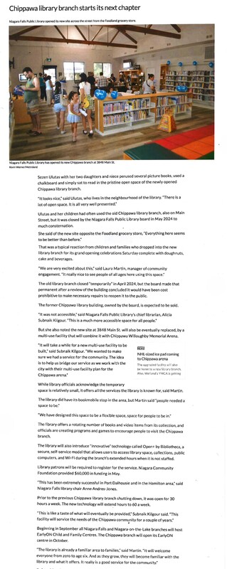 Chippawa library branch starts its next chapter : Niagara Falls Public Library opened its new site across the street from the Foodland grocery store.