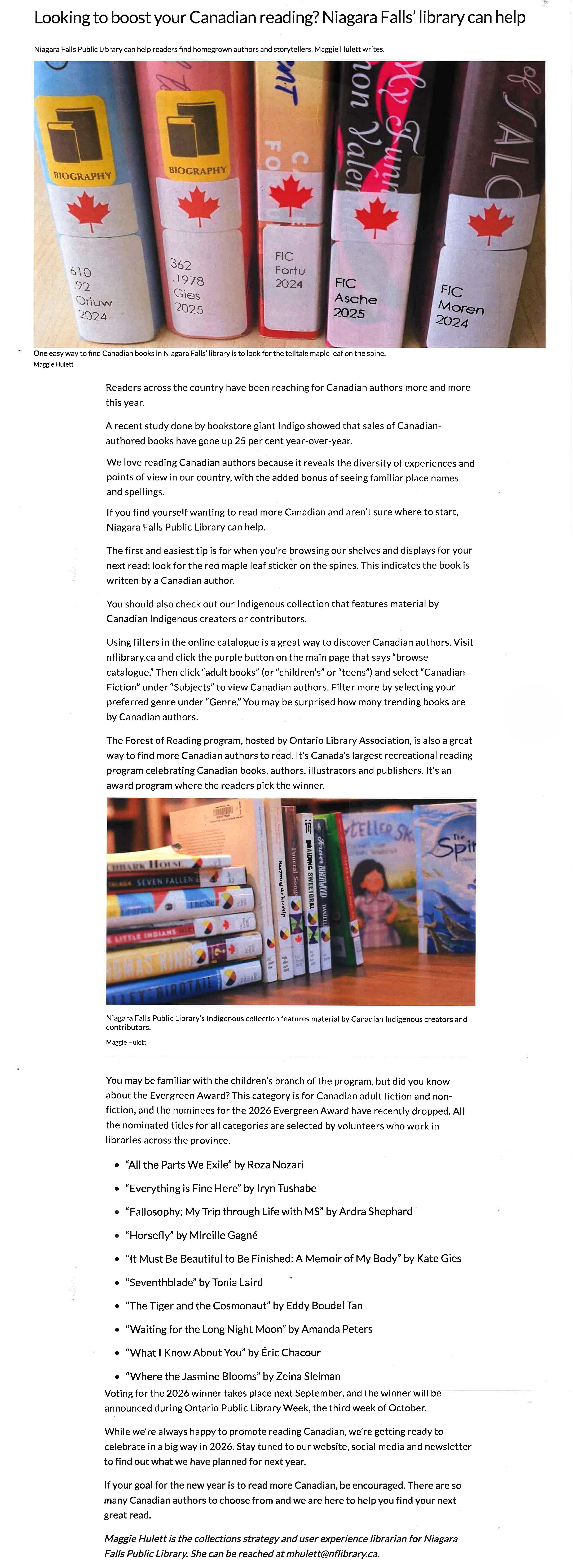 Looking to boost your Canadian reading? Niagara Falls' library can help : Niagara Falls Public Library can help readers find homegrown authors and storytellers