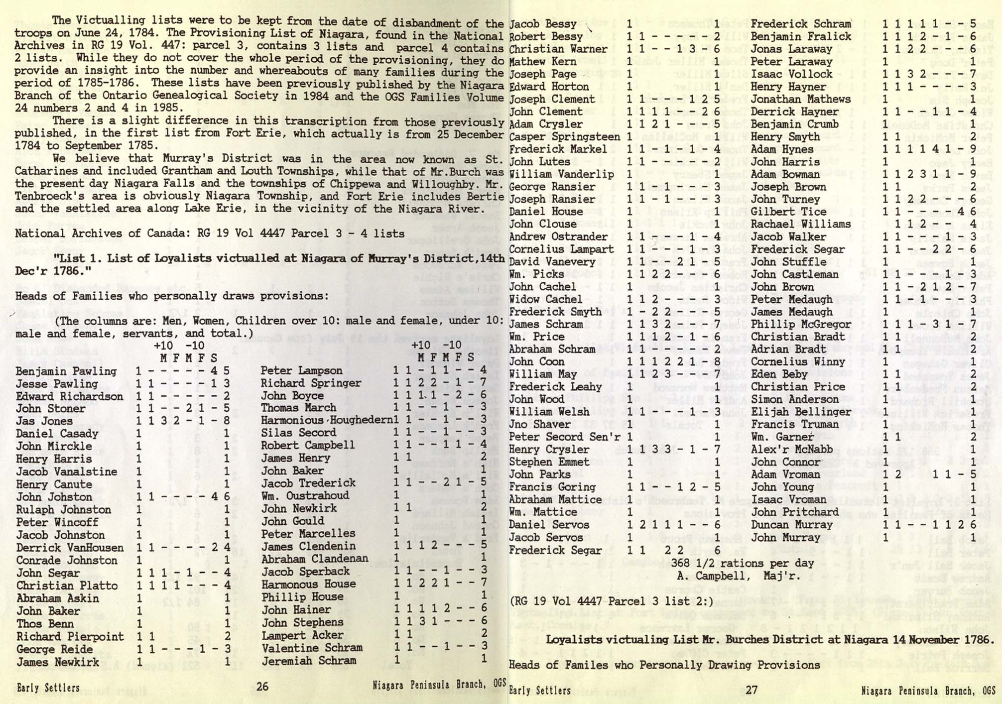 - Early settlers in Niagara : including the first "census" 1782, 1783, 1784, 1786, 1787, complete with index.
