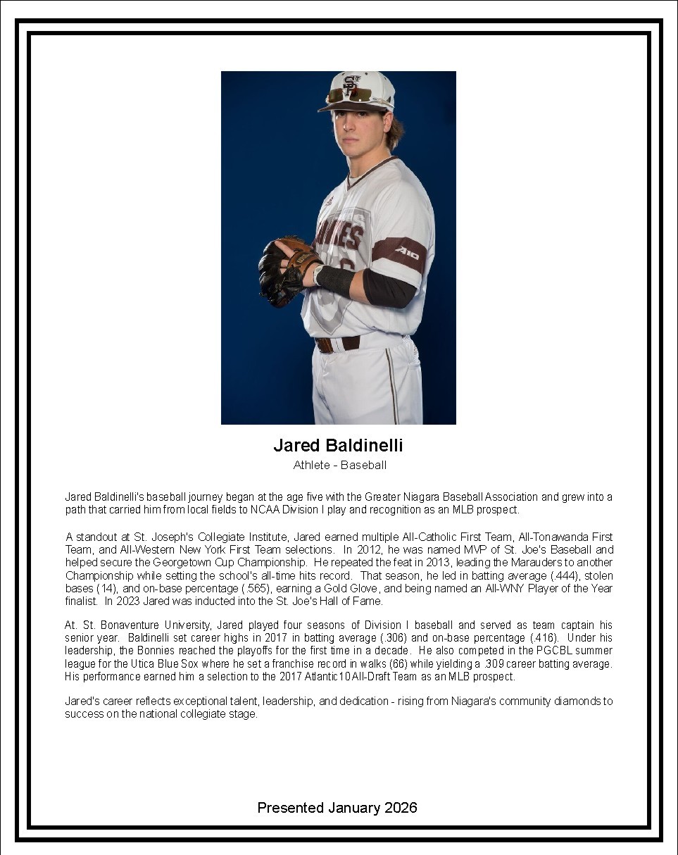 Jared Baldinelli's baseball journey began at the age five with the Greater Niagara Baseball Association and grew into a path that carried him from local fields to NCAA Division I play and recognition as an MLB prospect.