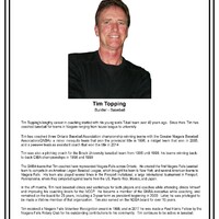 Tim was also a pitching coach for the Brock University baseball team from 1995 until 1999, his teams winning back-to-back CIBA championships in 1998 and 1999.