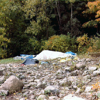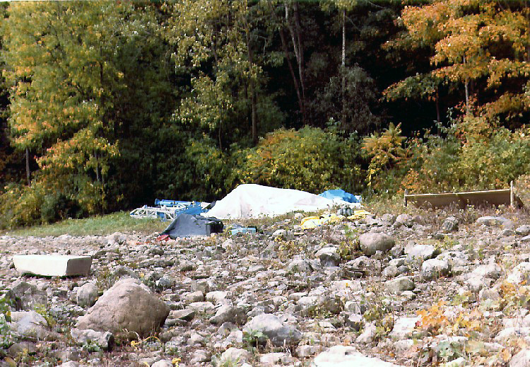 - Camera equipment stacked at the Whirlpool eddy ready for filming