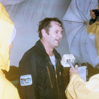 John David Munday being interviewed after going over the Horseshoe Falls in a barrel