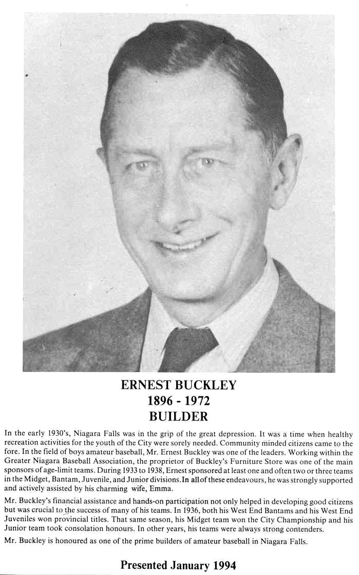 Niagara Falls Sports Wall of Fame - Ernest Buckley 1896 - 1972 Builder era 1931 - 1950