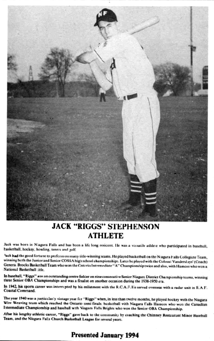 Niagara Falls Sports Wall of Fame - Jack (Riggs) Stephenson Athlete era 1931 - 1950