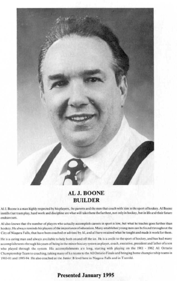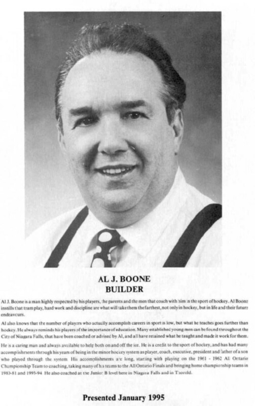 - Niagara Falls Sports Wall of Fame - Al J Boone Builder Hockey era 1971 - 1990