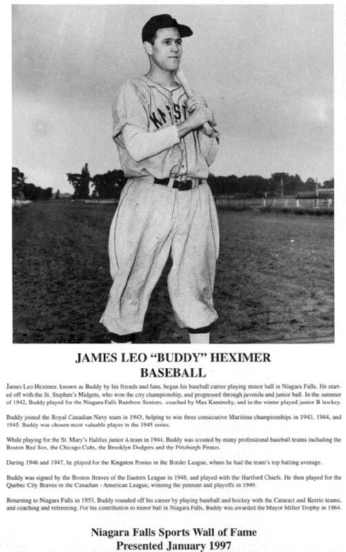- Niagara Falls Sports Wall of Fame - James Leo (Buddy) Heximer Baseball era 1931 - 1950