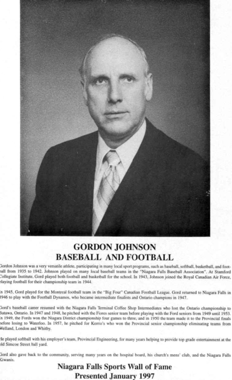 - Niagara Falls Sports Wall of Fame - Gordon Johnson Athlete Baseball & Football
