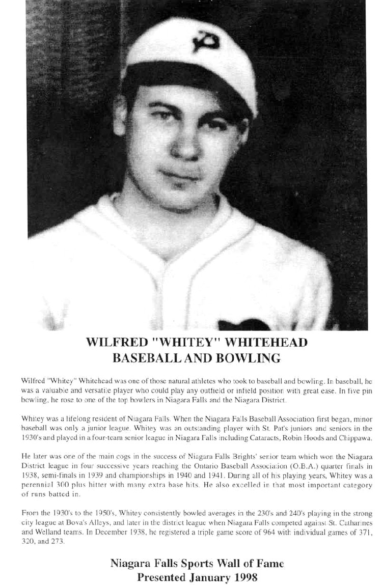- Niagara Falls Sports Wall of Fame - Wilfred (Whitey) Whitehead Athlete Baseball & Bowling