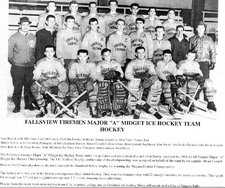 falls view LAIRD MCCONVEY CECIL MACDONALD AL BOONE TOMMY GIAGNORIO ALLAN PARKS TOMMY EARL JOE JOHN STICKL AL TOTH WAYNE CAMPBELL JOHN ARBOUR BRIAN CORNELL Fred Bassi Marsh John Stickl John Sorley Doug Robins Hank Michitsch Joe Veres Dave Thompson John Lombardi Brad Miller
