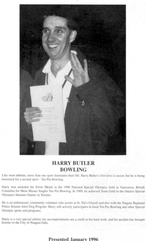 Niagara Falls Sports Wall of Fame - Harry Butler Athlete Bowling era 1971 - 1990