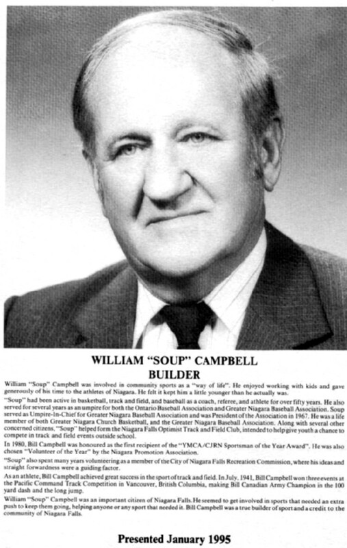 - Niagara Falls Sports Wall of Fame - William (Soup) Campbell Builder era 1951 - 1970