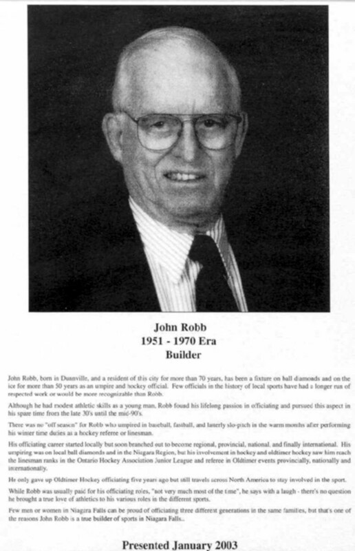 - Niagara Falls Sports Wall of Fame - John Robb Builder 1951 - 1970 era