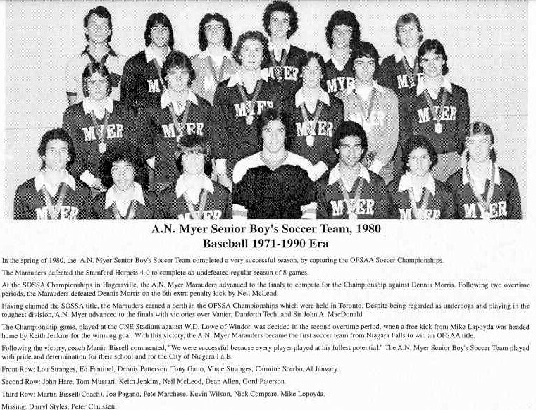 - Niagara Falls Sports Wall of Fame - A N Myer Senior Boy's Soccer Team 1980