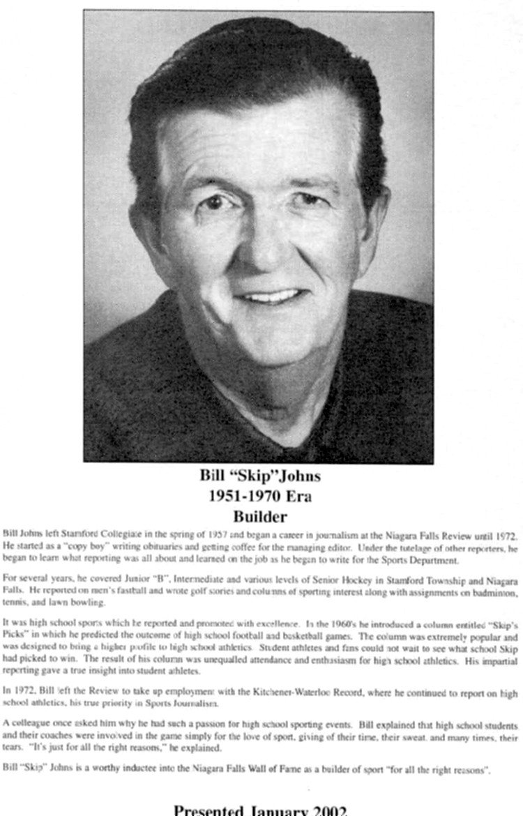 Niagara Falls Sports Wall of Fame - Bill (Skip) Johns Builder 1951 - 1970 era