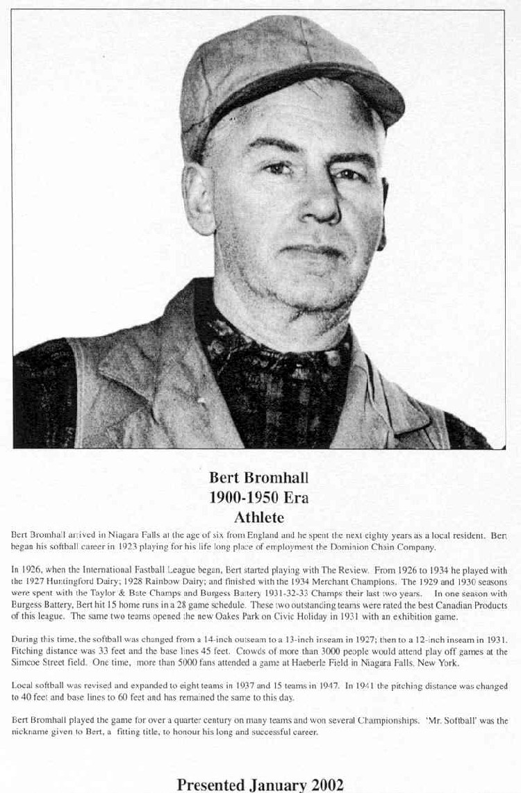 - Niagara Falls Sports Wall of Fame - Bert Bromhall Athlete Softball 1900 - 1950 era