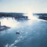 - Aerial view of the Maid of the Mist and the American and Horseshoe Falls