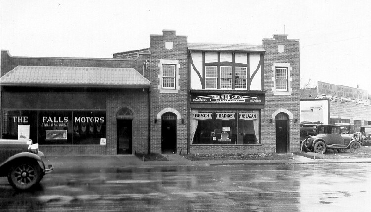 Falls Motors and Dominion Signs Ltd., Valley Way at corner of Morrison & Victoria