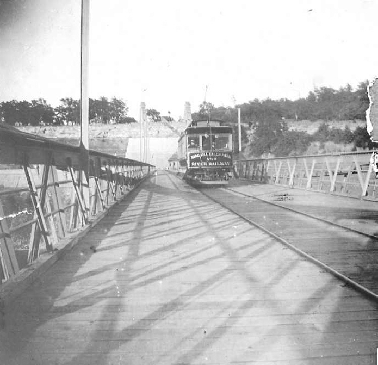 - Niagara Falls Park and River Railway car on the Lewiston-Queenston Suspension Bridge