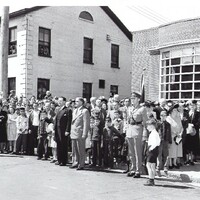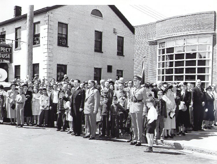 - His Excellency Field Marshall The Right Honorable Viscount Alexander of Tunis Governor General of Canada (dark suit) centre, to his right Mayor W L Houck
