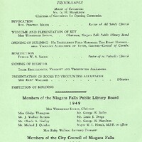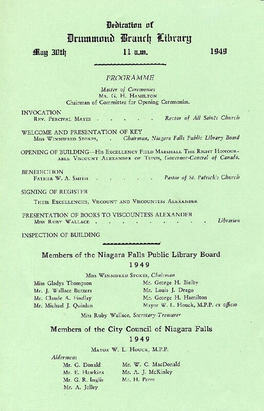 Programme of the opening of Niagara Falls Public Library Drummond Branch on Main St